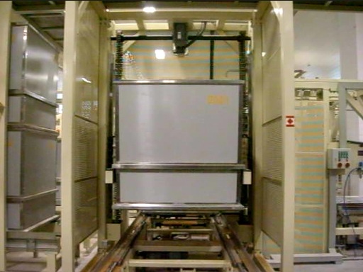 周轉(zhuǎn)箱碼分機(jī)1.主要功能周轉(zhuǎn)箱碼分機(jī)是一種用于煙絲箱式存儲(chǔ)自動(dòng)化物流系統(tǒng)中,完成兩個(gè)煙絲箱的疊箱或者分箱操作的設(shè)備。2....